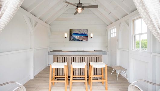 A few bikes and some rusty beach chairs sat in this old tool shed. Design Source relocated it next to a newly installed pool so it could be transformed into a cabana.